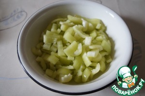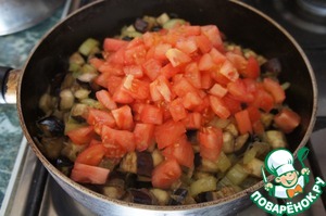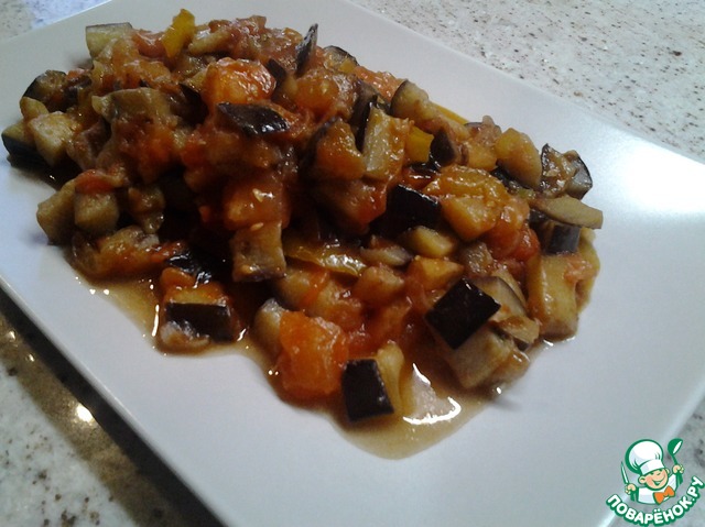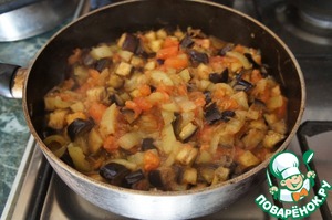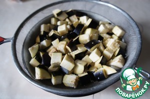 Баклажаны нарезать кубиками, посолить и дать отстояться в дуршлаге 2 часа, чтобы стек сок.