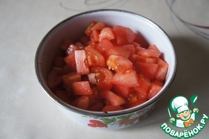 Помидоры надрезать крест-накрест, залить кипятком на пару минут, затем обдать холодной водой и снять кожицу.