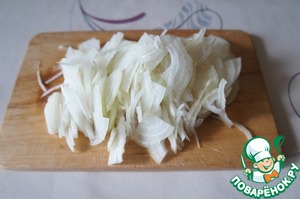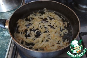 В глубоком сотейнике обжарить лук до золотистого цвета.
