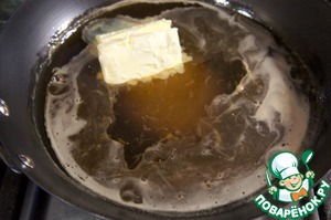 На сковороду насыпать оставшийся сахар и вылить воду. Сварить карамель.