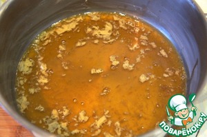 Из сока удалить дольки лимона. Влить образовавшийся сок в карамель. Добавить масло. Подержать на огне минут 5-6 до получения однородной массы.