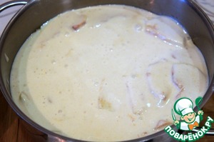 Красиво выложить первый слой долек на дно форм. Затем добавить остальные дольки примерно до половины высоты форм. Поставить в разогретую духовку под гриль минут на 5-7.
