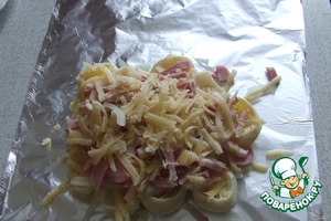 Картошечка в фольге. Картофель, сыр, колбаса.