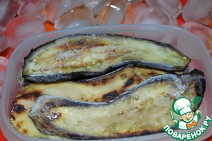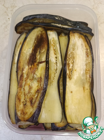 Через 8 часов достаю подносы, раскладываю замороженные баклажаны по контейнерам и снова в морозильную камеру, теперь уже до подачи на стол!