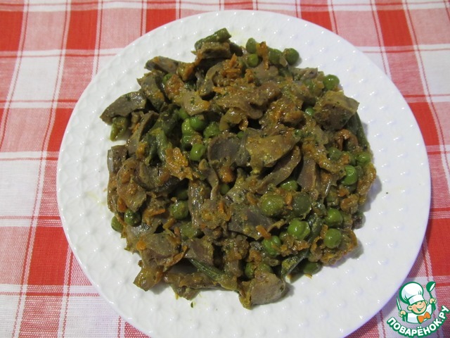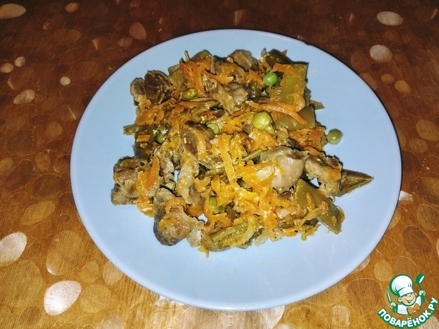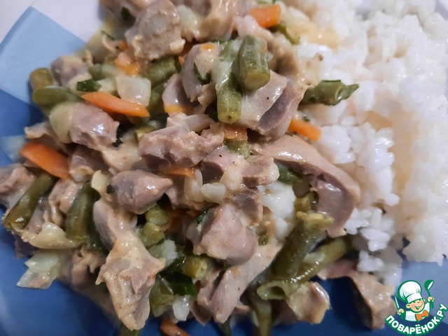 Рецепт «Куриные желудки, тушенные со стручковой фасолью»: