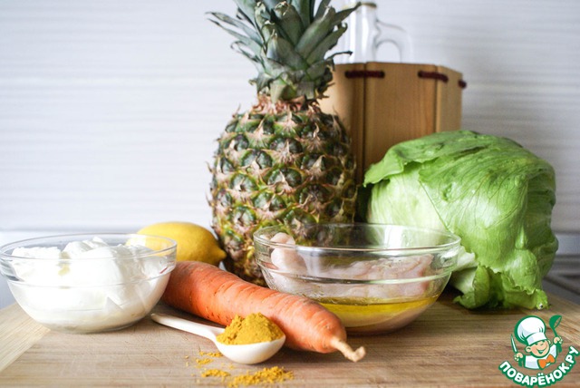 * Все мясные продукты я жарю определенным способом, об этом ниже. Если вы не хотите или не можете употреблять жареное - просто отварите куриную грудку или приготовьте на пару и присыпьте карри. Салат от этого не пострадает во вкусе. -