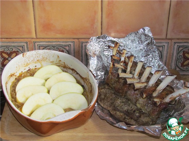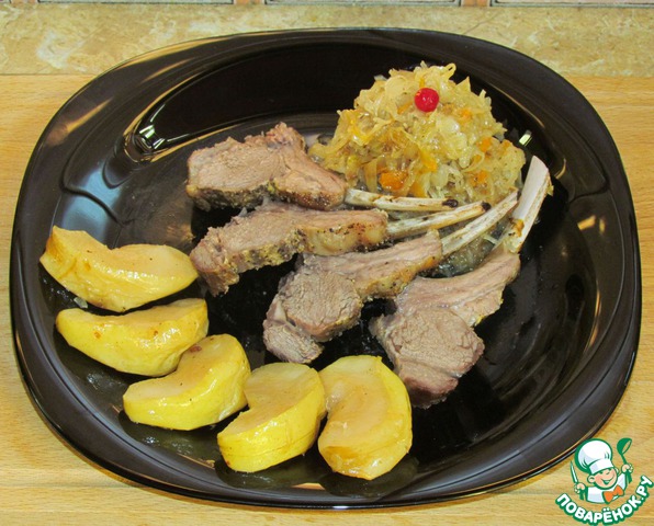 Рецепт «Каре ягнёнка с тушёной квашеной капустой и яблоком»:
