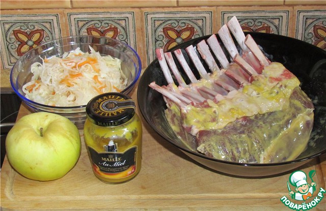 Ингредиенты для «Каре ягнёнка с тушёной квашеной капустой и яблоком»: