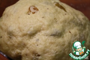 Тесто хорошо вымесить, затем добавить- вмешать анис и изюм.