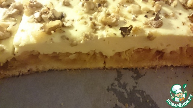 Даем готовому пирогу постоять. Затем нарезаем на квадратики.