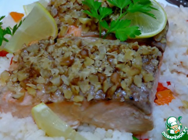 Лосось в ореховой корочке с рисом и овощами в мультиварке (пароварке)