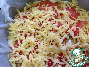 На помидоры выкладываем тертый сыр.