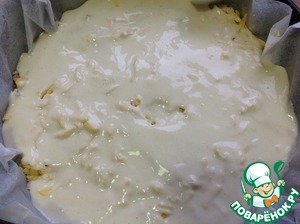 В форму, выстеленную пекарской бумагой, выливаем половину теста.