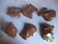 Берем говяжью печень. Выбирать нужно с "тонкого края", т. е. куски поближе к краям. Это самая нежная часть и в ней расположено меньше всего желчных протоков. Обмываем её холодной водой.