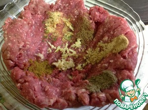 В фарш добавить специи, зубчик чеснока мелко порубленный, сметану