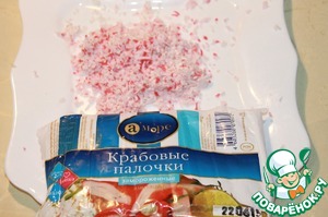 Ингредиенты для «Риет из крабовых палочек и малосольного лосося с икорным соусом»: