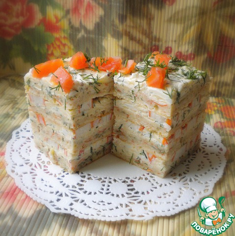 Рецепт "Закусочный торт с крабовыми палочками "А`Море"":