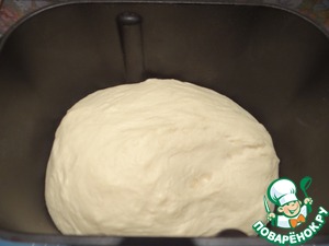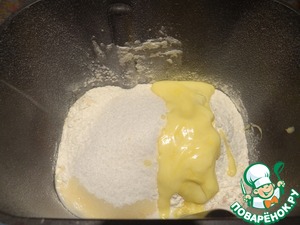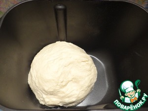 Помещаю ведерко в хлебопечку, включаю режим замеса теста.