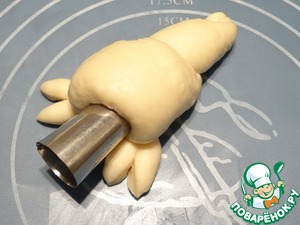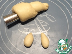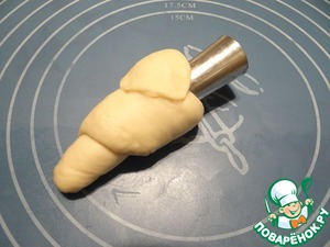 Наматываю раскатанное тесто на металлические конусы для выпечки, начиная с меньшего конца жгута.