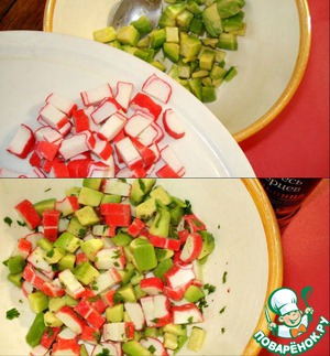 Салат из крабовых палочек с авокадо и куриной грудкой