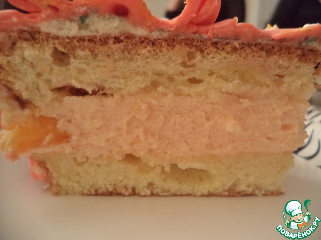 Разрезаю на 4 части по высоте, три использую для домашнего тортика, один - для другого рецепта. Крем можно использовать любой по-своему вкусу. Рецепт не привожу, так как целью было выложить рецепт бисквита. Приятного чаепития!