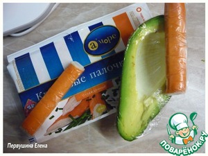 Очищаем авокадо, освобождаем его от косточки, режим небольшими кусками. Крабовые палочки (ТМ «А’море») режем произвольно.
