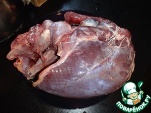 Далее я вырезаю практически все кости, они крупные и заполнять ими посуду нет смысла. Тем более за все косточки и обрезки собака сказала мне огромное спасибо. Мясо по цвету напоминает телятину, без особого специфического запаха хвои, за что и ценится. Разделав на кусочки, я вымачиваю мясо пару часов в холодной воде, меняя воду несколько раз.