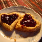 Половину остывших сердечек заполнить клубничным джемом, вторую половину - абрикосовым. Присыпать печенье сахарной пудрой.