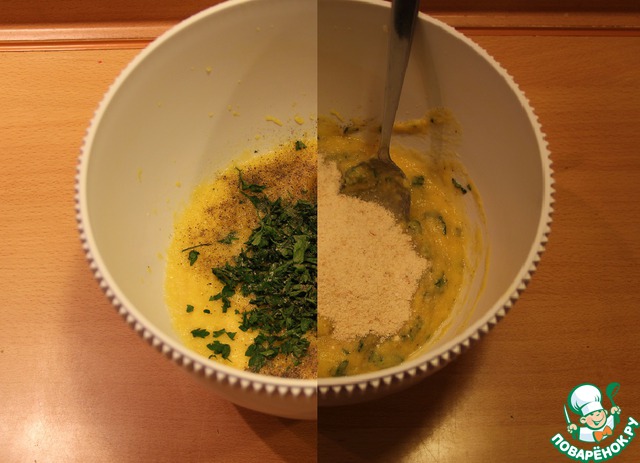 • Добавляем мелко нарезанную петрушку и перец чёрный молотый.