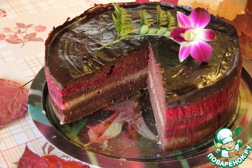Поливаем наш пирог глазурью и отправляем на ночь в холодильник.