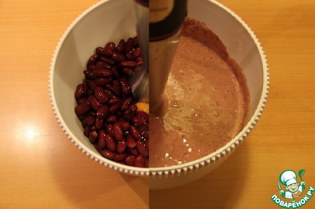 ВАЖНО: не добавляем все яйца сразу, а то фасоль не перемелется полностью и будет комочками.