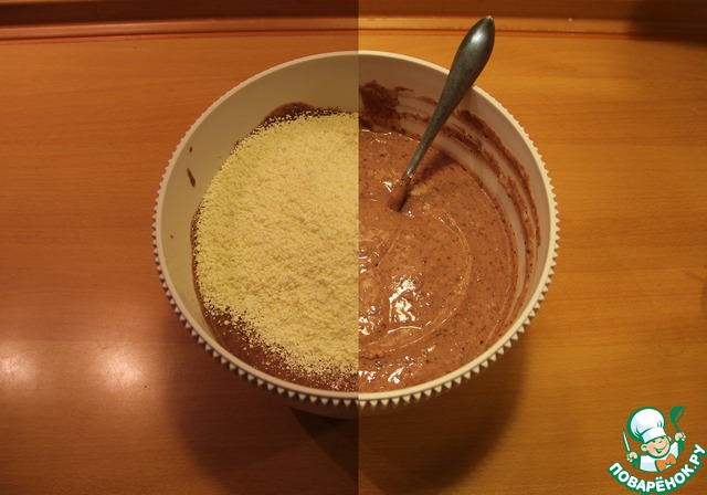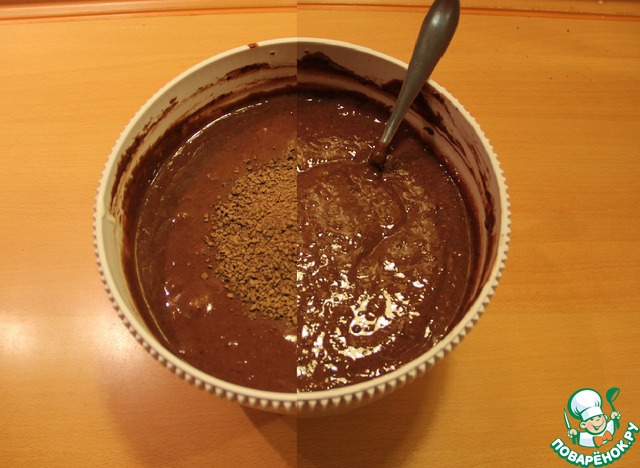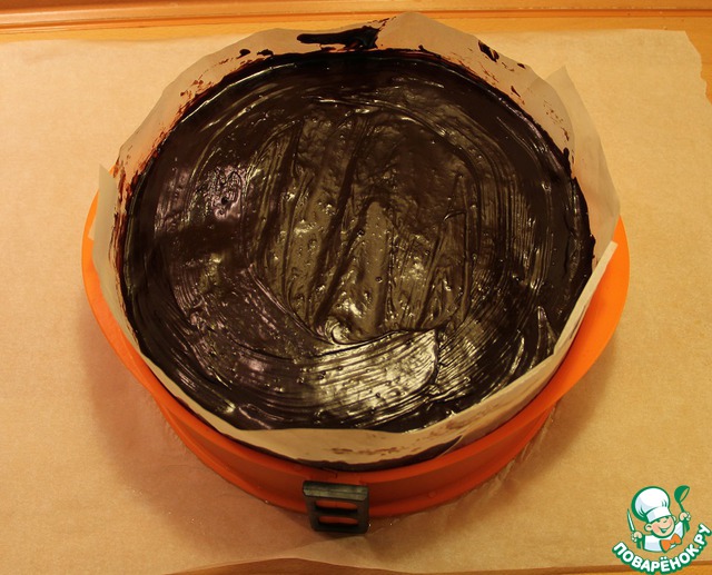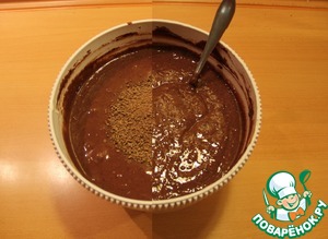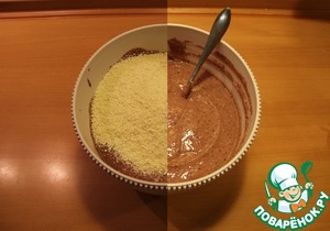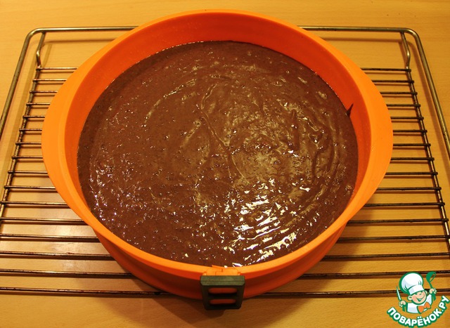 Вводим последний ингредиент - молотый шоколад, тщательно перемешиваем и выливаем в подготовленную ворму. У меня диаметр 28 см.