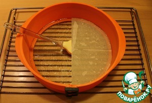 Потом поочерёдно вливаем чуть остывшую пропитку и перекладываем коржами. -