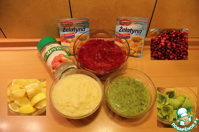 - Киви (нижний слой пропитки + 10 г стевия) — 400 г
