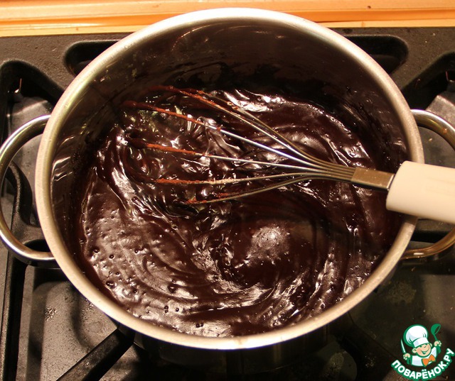 Растапливаем масло с сахаром на малом огне, непрерывно помешивая, добавляем сметану и в конце какао. Всё время мешая, доводим до кипения.