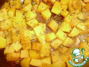 Выкладываем в форму, сбрызгиваем 2 ст. л. подсолнечного масла, присыпаем специями ( итальянскими травами) и запекаем в духовке при 180 градусах до готовности (примерно минут 15).