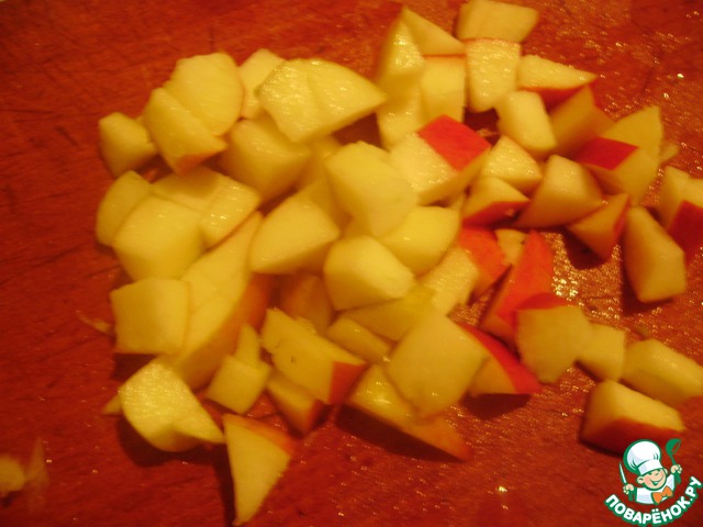 Яблоко нарезаем кубиками и сбрызгиваем лимонным соком. |