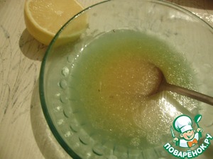 Для приготовления заправки смешаем сок лимона, мед, горчицу, подсолнечное масло. Все хорошо размешать.