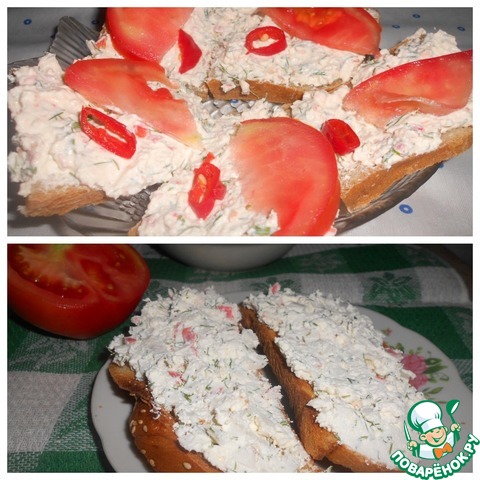 Сказать, что это вкусно, значит ничего не сказать. Это ужасно вкусно!!! Идеальная намазка для бутербродов из белого и бородинского хлеба, вкусно так же намазать на половинку отварного яйца или помидора. Внимание, эта намазка еще и низкокалорийная, не бойтесь кушайте ее на здоровье, фигуре она абсолютно не повредит!