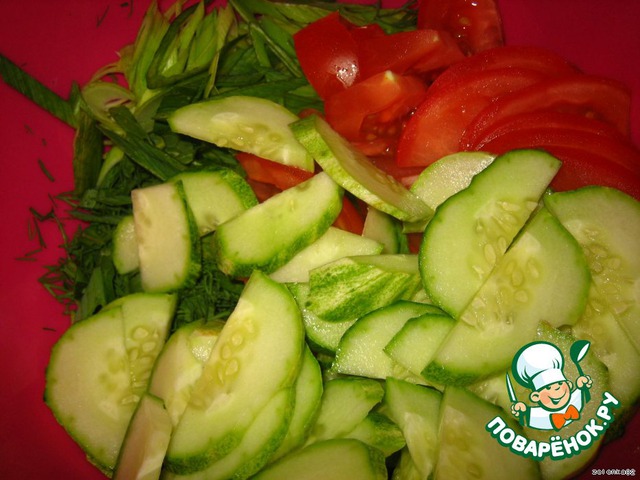 Салатик из свежих овощей с огорода. Полезный и витаминный.