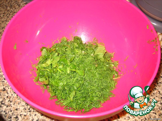 • Режем всю зелень, если есть еще какая-нибудь любимая, то и её.