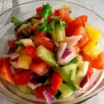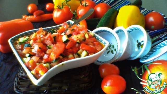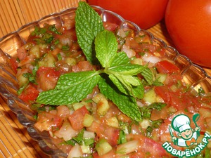 Аджылы эзме. Для любителей остренького и турецких салатов-закусок. Прекрасное сочетание овощей, зелени и заправки. Остроту можно регулировать количеством перца. Хорошо подходит к мясным блюдам.