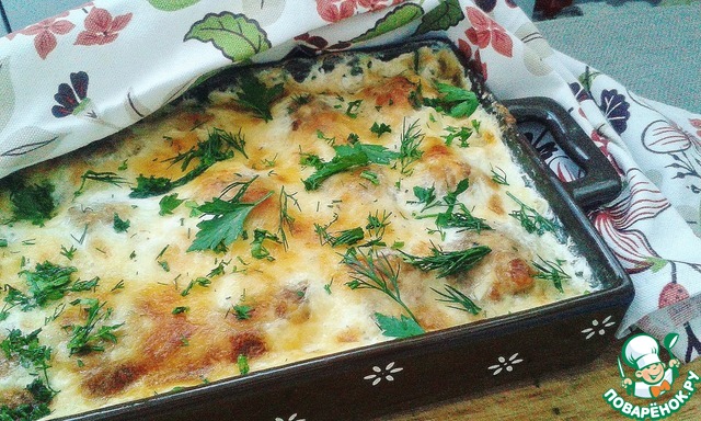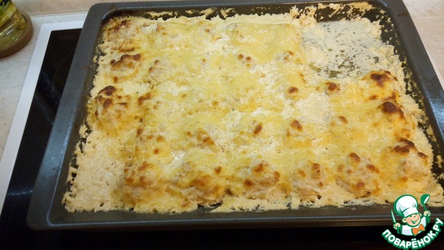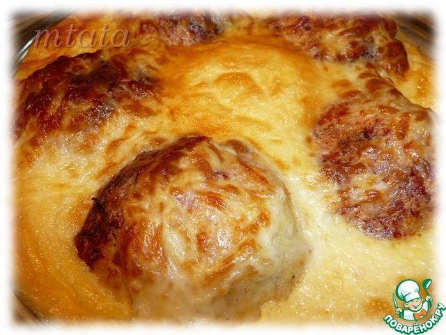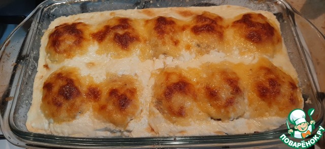 Вынуть форму с шариками из духовки, залить соусом и поставить для дальнейшего запекания еще на 15-20 минут.
