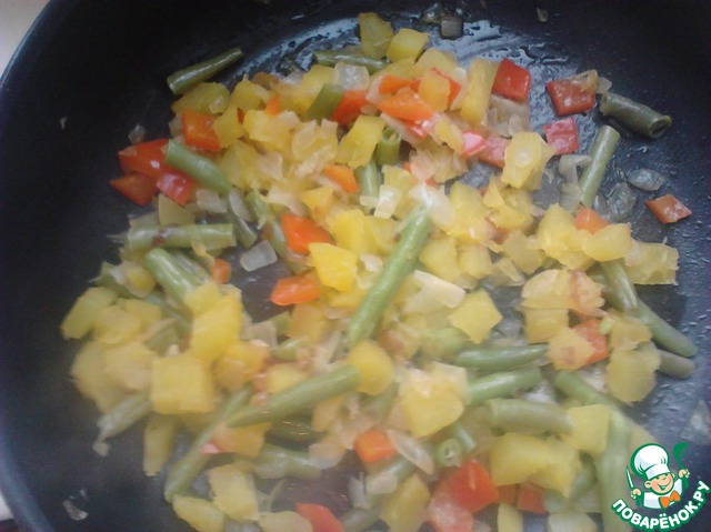 Достаем из морозилки замороженные с лета фасоль стручковую, перец болгарский и кабачок.