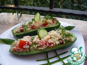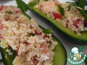 Рецепт «Салат с булгуром и грецким орехом в огурце»: