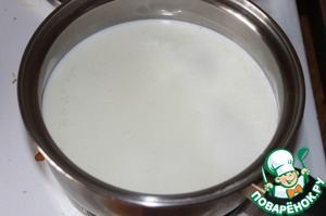 Перелить все в кастрюлю, продолжать взбивать венчиком на небольшом огне до загустевания, снять с огня, остудить до 80 градусов