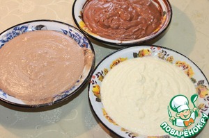 Пирожное состоит из 3-х бисквитов, которые готовятся практически одинаково, разница только в добавках.