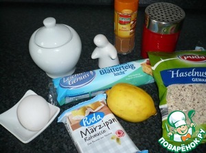 Поместить в блендер: яйцо, марципан, орешки, соль, сахар, цедру лимона, корицу, ром (его я не добавляла из-за деток) и взбить всё вместе до однородной массы!