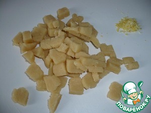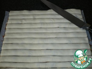 Нарезать подготовленное, охлаждённое тесто на полоски, толщиной 1,5 см.!