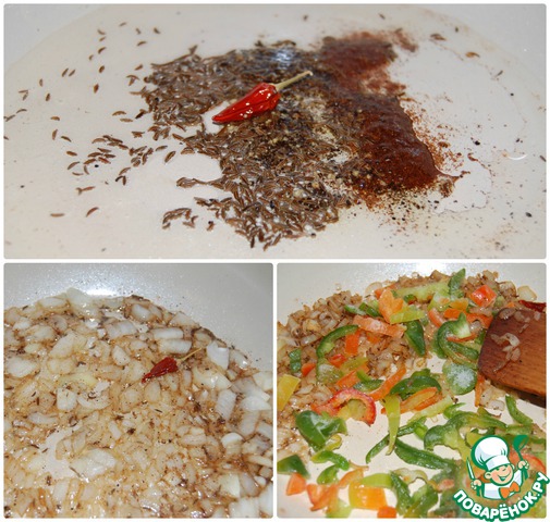 - Смесь специй (тмин, перец чёрный молотый, паприка, маленький перчик чили) — 1 ч. л.